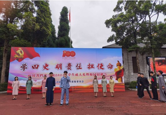 6月18日上午,四川省档案学校在操场隆重举行2021年学生成人礼暨校园招聘会。省档案馆档案信息处处长,省档案校党委书记、校长徐宏,副校长童以鸿,党委副书记、纪委书记李富民,示范校建设办主任李萍,继续教育中心主任卢世蕾,9+3驻校教师罗玄受邀出席,全校师生2000余人观礼,共同为300余名同学送上十八岁的祝福,见证他们的成长。