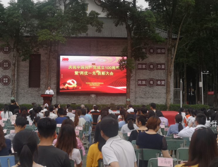 2021年6月30日,中共四川省档案学校委员会在学校塑胶操场上召开庆祝中国共产党成立100周年暨“两优一先”表彰大会,共同回顾党的光辉历程,缅怀先烈的丰功伟业,传承党的优良传统,表彰先进、树立标杆,营造崇尚先进、争当先进的浓厚氛围,激励全校教职员工坚定信念,勇于担当,奉献发展。省档案馆档案信息处处长、校党委书记、校长徐宏出席会议并讲话。