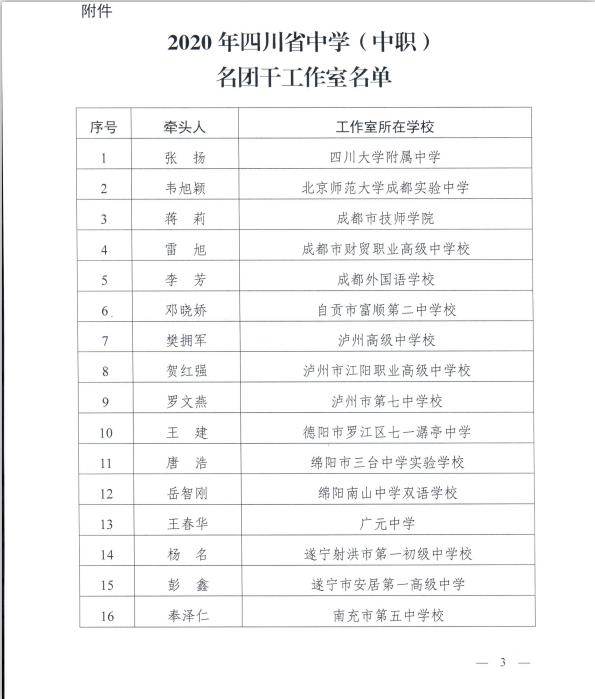 喜报!兰台名团干工作室被评为“2020年四川省中学(中职)名团干工作室!”