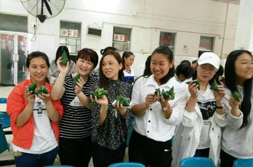 首先,学生科老师介绍了端午节的由来和各地的风俗习惯;接着,老师和学生们一起动手包粽子,折粽叶、填糯米、裹叶子、扎线……一道道工序有条不紊,一个个粽子形态各异,食堂里满欢乐的气氛,大家忙得不亦乐乎。