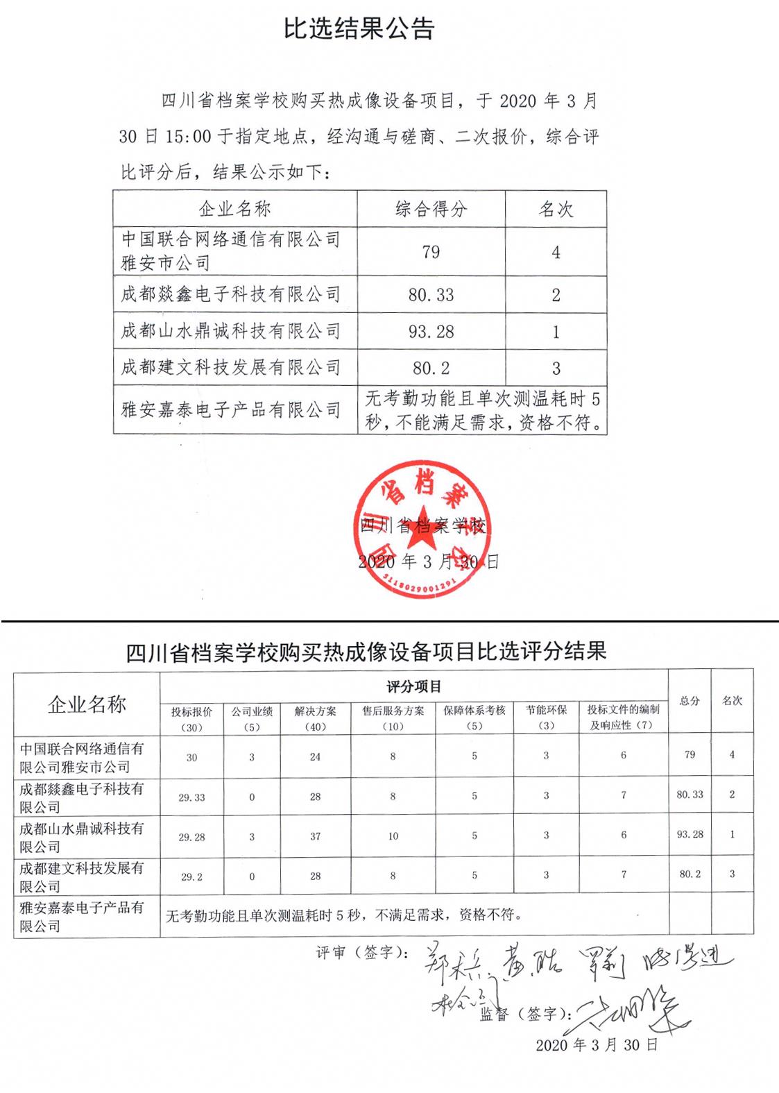四川省档案学校购买热成像设备项目比选评分结果