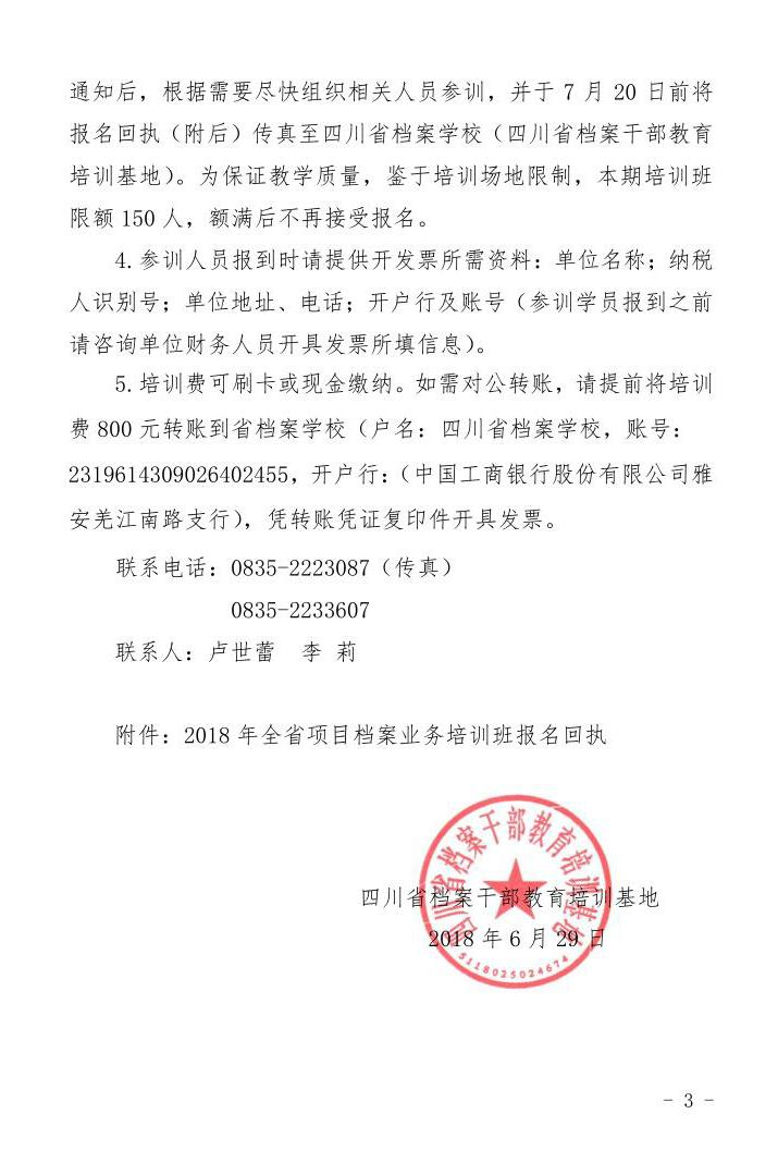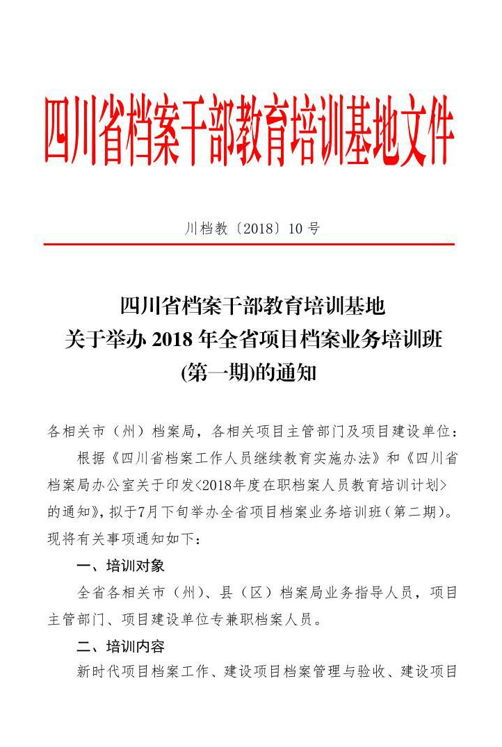 四川省档案干部教育培训基地关于举办2018年全省项目档案业务培训班(第一期)的通知