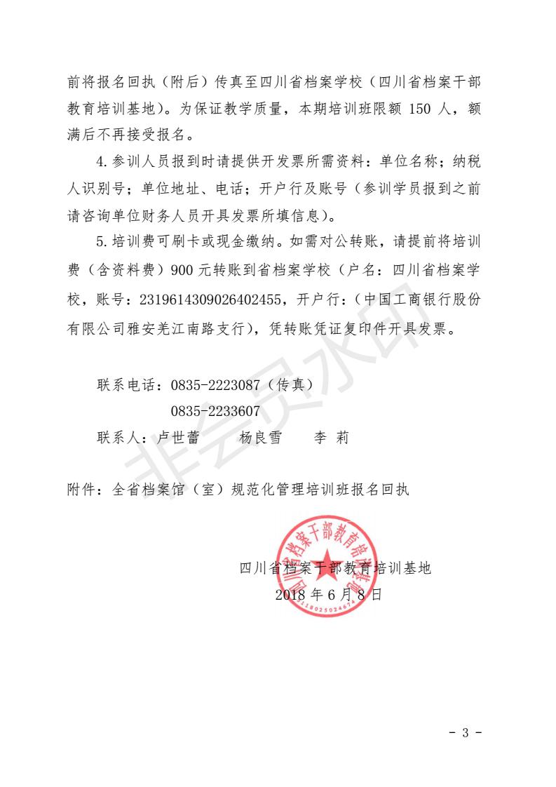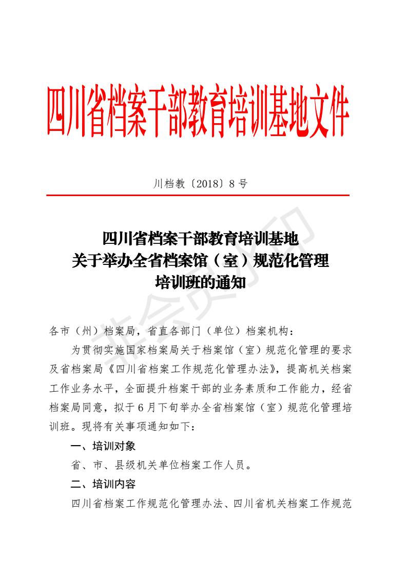 四川省档案干部教育培训基地关于举办全省档案馆(室)规范化管理培训班的通知
