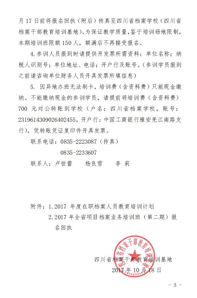 关于举办2017年全省项目档案业务培训班(第二期)的通知