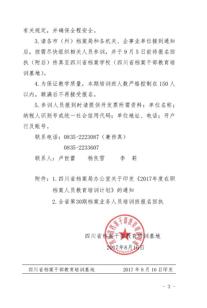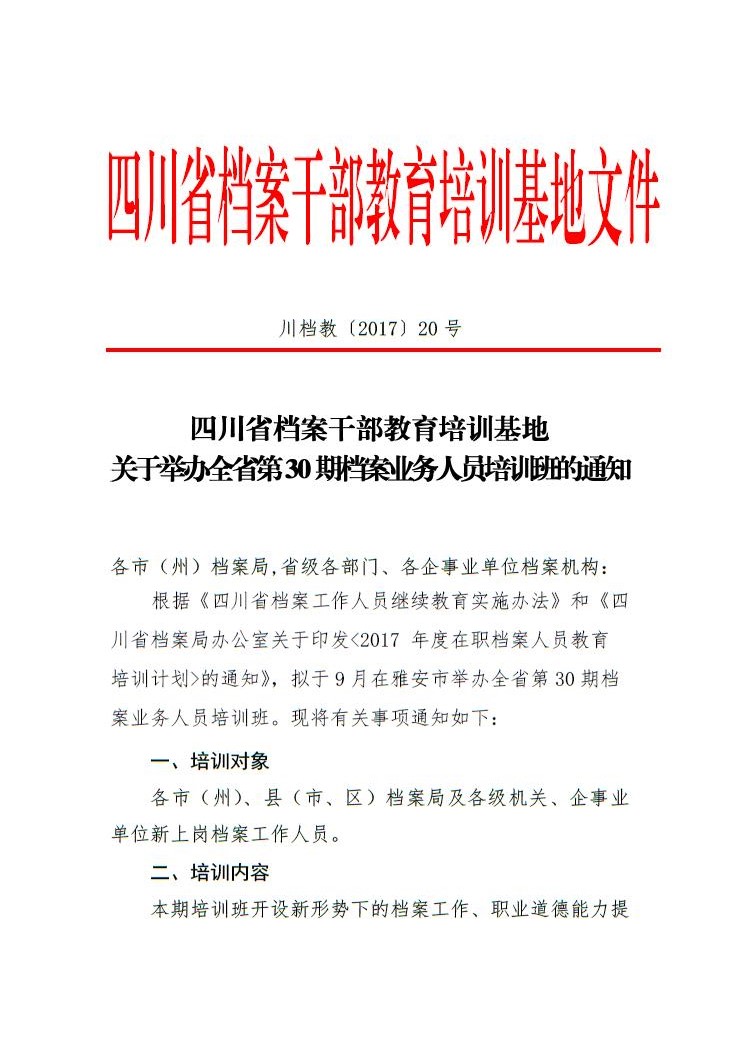 关于举办全省第30期档案业务人员培训班的通知
