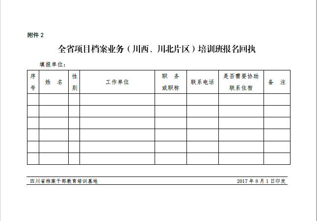 关于举办全省项目档案业务(川西、 川北片区)培训班的通知