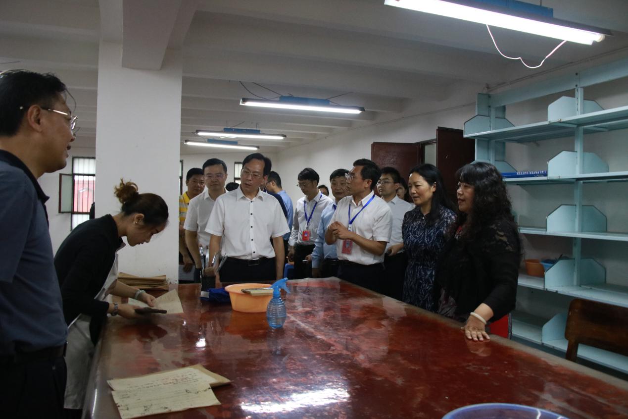 李江指出,搞好档案修裱技艺传承非常重要,要发扬“工匠精神”,培养出更多、更高水平的档案修复专业人才。对学校需要的国内顶尖级的档案修复专家,可在学校设置工作室,配备专门的、满足需要的工作场所,并从住房等方面给予特殊照顾。确保档案数据的安全、可用、稳定,非常重要,学校应积极开展相关实验。李江肯定了学校通过重视档案科研工作,通过办好校办企业,不断培养好档案管理专业学生的有特色、有成效的做法。