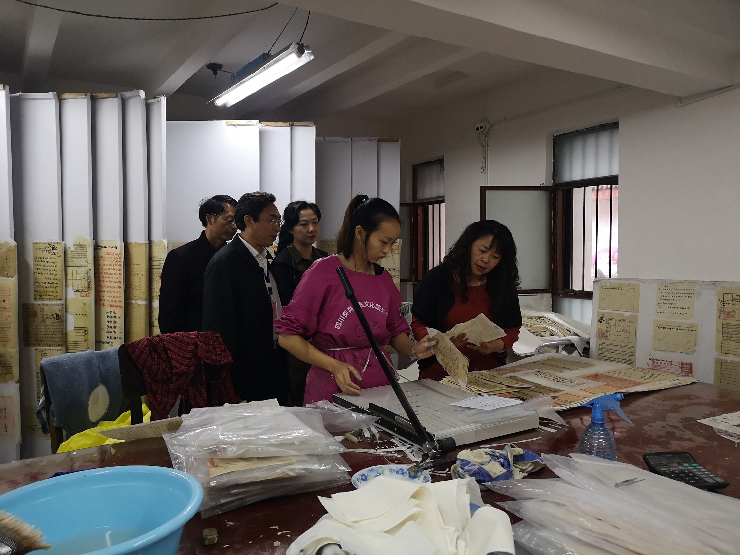 调研中,衡彤一行一边参观我校档案实训基地、根雕实训室、继续教育大楼,一边听取关于我校历史底蕴、办学条件、实践教学、校企合作等有关情况的介绍。在档案实训基地――校办企业四川资育档案服务公司,衡彤与留校工作的学生进行了亲切交流,了解她们的工作学习情况,鼓励她们发扬大国工匠精神,传承好档案修裱技艺。