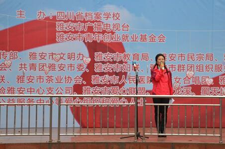 4月27日下午,由四川省档案学校、雅安市广播电视台、雅安市青年创业就业基金会联合主办的“美丽青春・衣然有爱”公益捐赠暨“一对一”结对帮扶活动在我校启动。活动受到雅安市委宣传部、雅安市文明办、雅安市教育局、共青团雅安市委等9家单位和雅安市群工联、雅安市茶业协会、雅安市爱心联盟等多家爱心组织的大力支持。活动由雅安市电视台主持人杨虎妹主持。 伴随着《感恩的心》动人的音符和雅安市爱心联盟成员精彩的表演,捐赠活动正式拉开帷幕。表演过后,雅安市《民声123》栏目制片人、雅安电视台主持人唐淑楠用真挚感人的“爱心衣橱”的故事道出了活动缘由;接着,出席领导嘉宾和各爱心人士将精心整理、消毒后的衣服和学习用品面对面地发放给受助学生。过后,我校学生深情演唱《风中的羽翼》,表达了对各位嘉宾和爱心人士的感激之情。市文明办副主任李祥鼓励各位学生珍惜机会、努力成材。 雅安市爱心联盟手语表演《感恩的心》 雅安市电视台主持人唐淑楠讲话