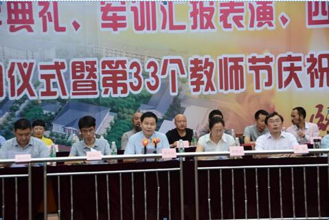 学校副校长童以鸿主持大会。雅安市经信委机关党委书记黄晓玉、雅安市芦山县副县长陈洋尔、雅安市教育局职称科科长杨德福、雅安市芦山县根雕管委会副主任陈焰等应邀出席,全校3000余名师生参加。