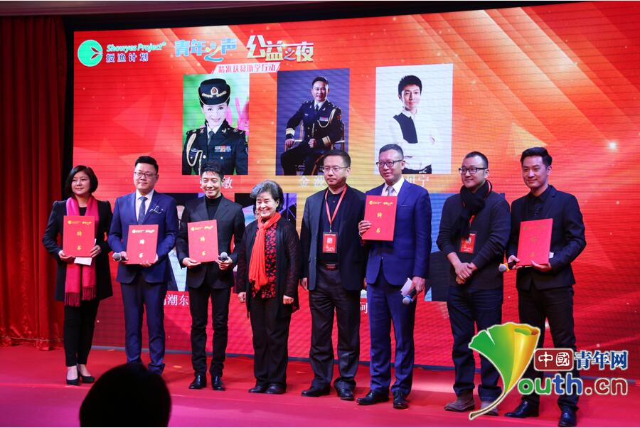 活动现场,央视著名主持人撒贝宁、高潮东、王筱磊、沙玛阿果、舒冬等被授予“授渔计划・青年之声”精准扶贫助学行动爱心志愿者证书。