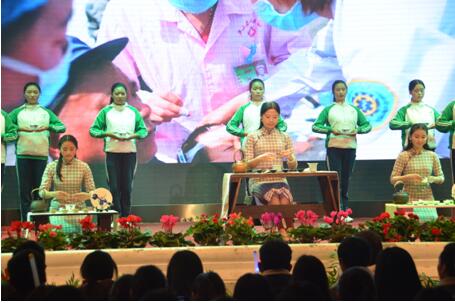 文艺汇演分为炫彩校园、匠心筑梦、感恩奋进三个篇章,共有来自全市8所职业院校的17个节目参加演出。为了充分展示我校师生的风采和精神风貌,我校精心选送了青春活力舞《阿婆的幸福生活》、别出心裁的技艺展示《青春有梦・启蒙花开》以及原生态歌伴舞《带我到山顶》共3个节目参加了本次演出。两个小时的演出,气氛热烈,歌舞飞扬,掌声阵阵。全市8所职业院校的师生们欢聚一堂,载歌载舞,共同展示我市职业教育事业的华彩。