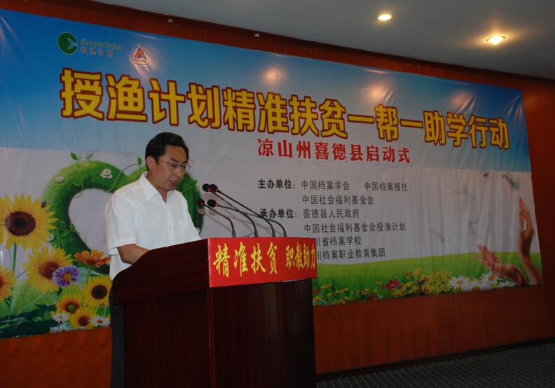 6月19日,国家档案局局长、中央档案馆馆长李明华出席由四川省档案学校发起和承办的“授渔计划精准扶贫一帮一助学行动”凉山州喜德县启动式。