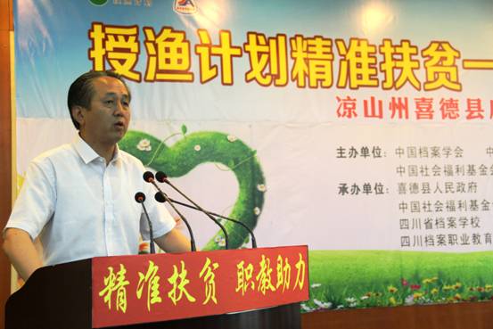 国家档案局局长、中央档案馆馆长李明华出席并发表重要讲话,指出国家档案局和授渔计划在凉山州喜德县联合开展“授渔计划精准扶贫一帮一助学行动”,是贯彻落实习总书记提出的“四个切实、五个一批、六个精准”扶贫开发重要思想和中央扶贫战略部署的关键举措。扶贫必扶智,让贫困地区的孩子们能接受良好的教育,是阻断贫困代际传递的重要途径,授渔计划是在贫困地区实实在在的落地的善举,为广大贫困学子带来改变命运的机会。李局长还就该项目在当地的落地提出相关具体要求。