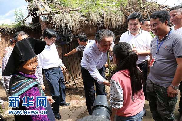启动式后,李明华一行来到喜德县两河口镇斯果觉村调研,走访贫困户,并与村民代表和喜德县相关负责人座谈。