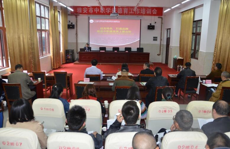 2016年4月7日,由雅安市教育局主办,我校承办的雅安市中职学校德育工作培训会在综合楼阶梯教室举行。雅安各县(区)教育局分管局长、各股室,各中职学校校长、班主任等共50余人参加此次培训会。市教育局职成科科长杨德福主持会议。