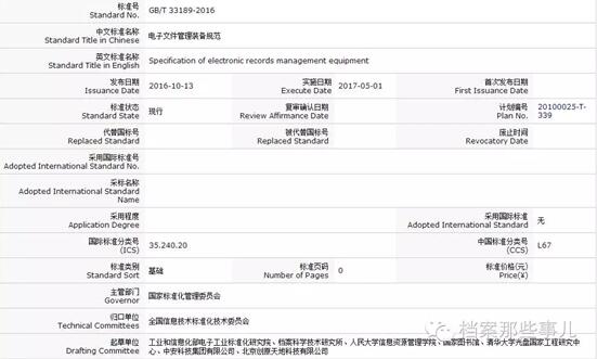 2016年10月13日,在世界标准日前夕,国家标准委发布2016年第17号中国国家标准公告,发布国家质检总局和国家标准委批准的315项最新国家标准。其中,电子文件管理的标准也在此列,包括《电子文件管理装备规范》(GB/T 33189-2016)和《电子文件存储与交换格式版式文档》(GB/T 33190-2016)两项最新标准。