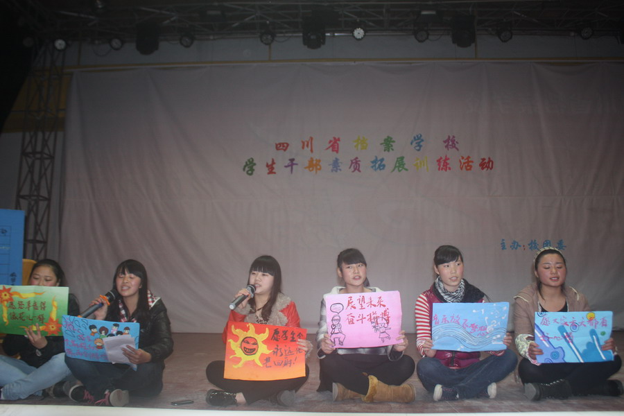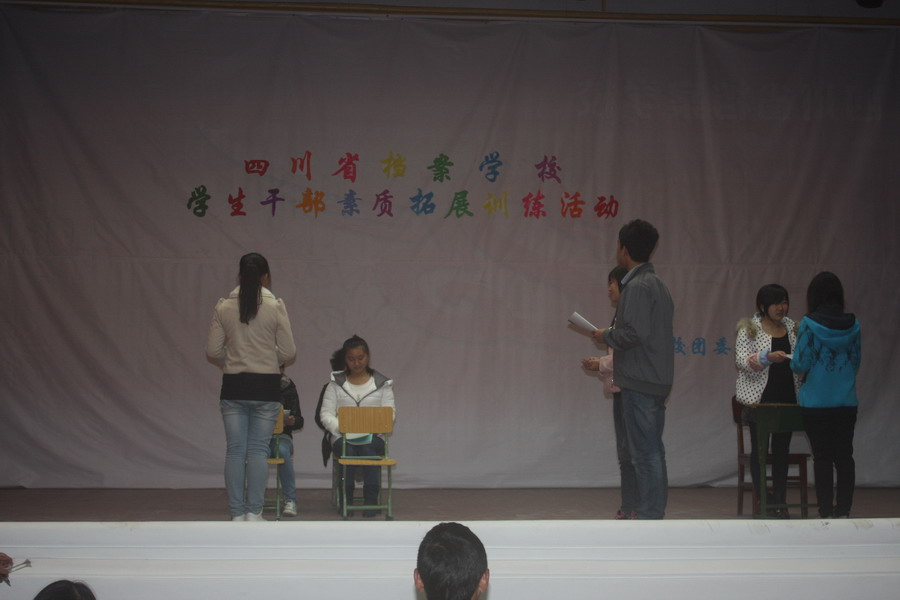 2012年11月21日晚,学校团委组织全校150多名学生干部在大礼堂进行了一次素质拓展训练,此次训练分为三个环节。