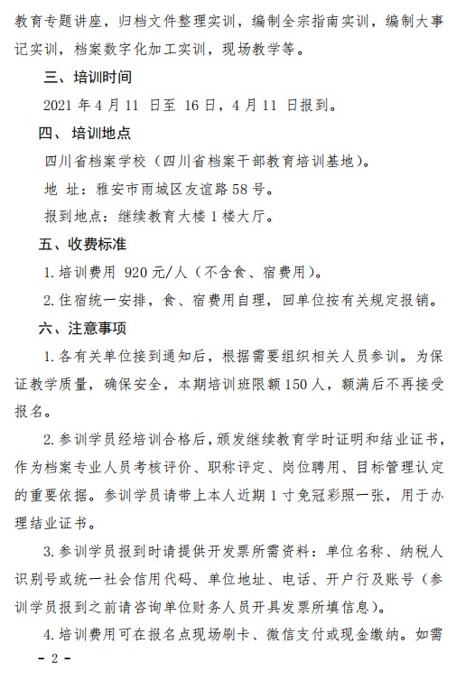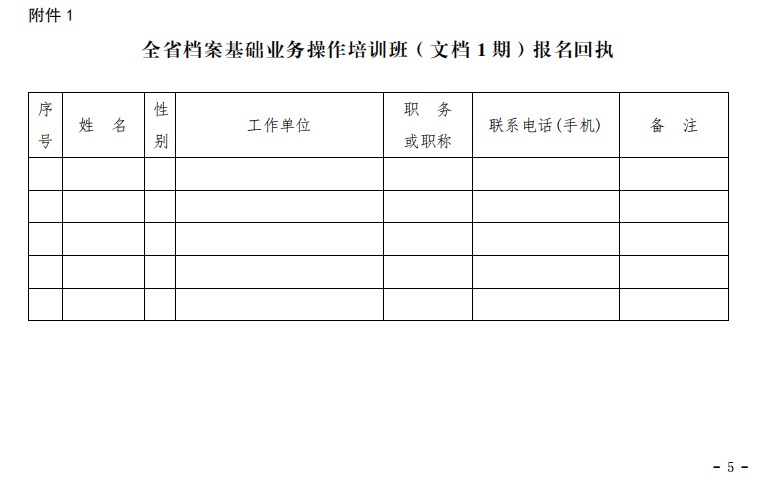 关于举办全省档案基础业务操作培训班(文档1期)的通知