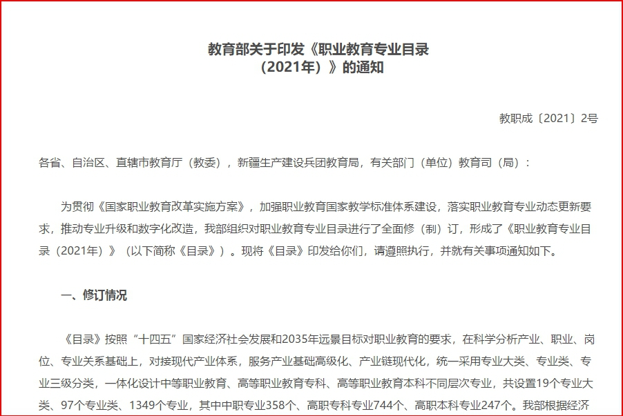 2021年3月17日,教育部印发文件《教育部关于印发<职业教育专业目录>(2021年)的通知》(教职成〔2021〕2号)。学校积极申报的图书档案数字化管理专业被纳入中等职业教育专业目录,这是档案类有关专业第一次纳入中等职业教育专业目录。