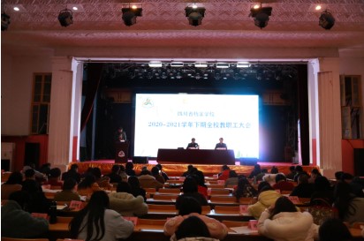 2021年2月27日下午,四川省档案学校2020-2021学年下期第一次全校教职工大会在大礼堂召开。学校党委书记、校长徐宏出席并讲话。