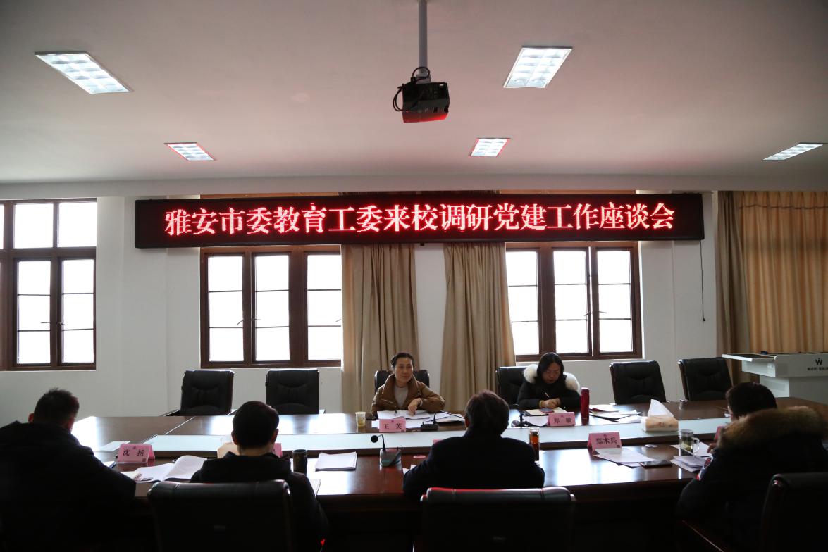 2021年1月11日下午,雅安市教育局党组成员、机关党委书记王英,市委教育工委办公室主任郑敏一行到我校调研党建工作。