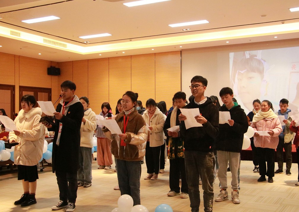 会议在全体奏唱国歌中拉开帷幕,随后各部门代表作了学期工作总结,校团委伟此则老师宣读第二十四届学生干部聘任文件,各部门指导老师为干部们颁发了聘书和授牌,学生干部们在学生团总支书记龙巧的带领下高举右拳,进行了就职宣誓。