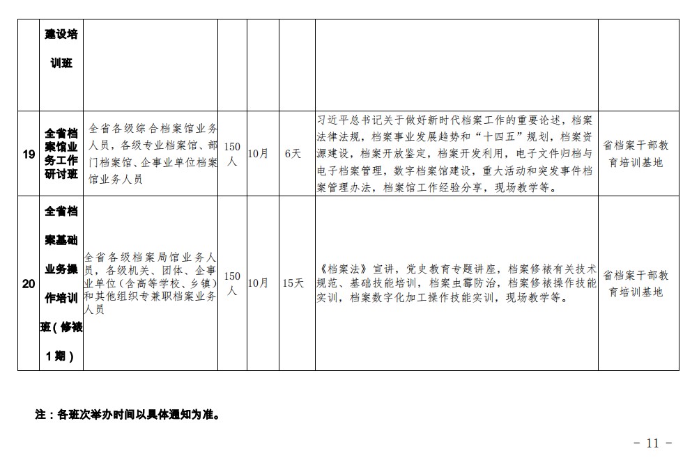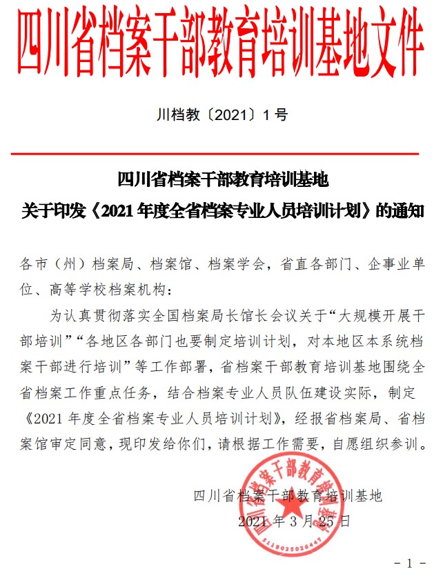 关于印发《2021年度全省档案专业人员培训计划》的通知