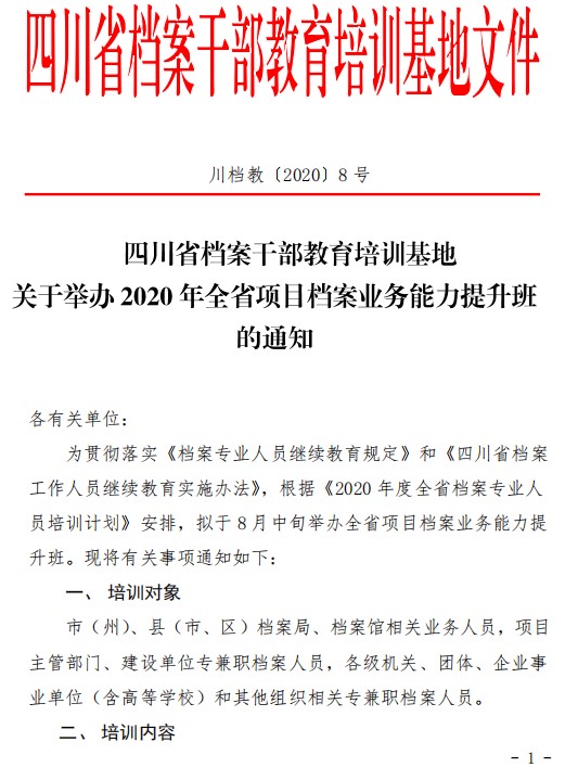 关于举办2020年全省项目档案业务能力提升班的通知