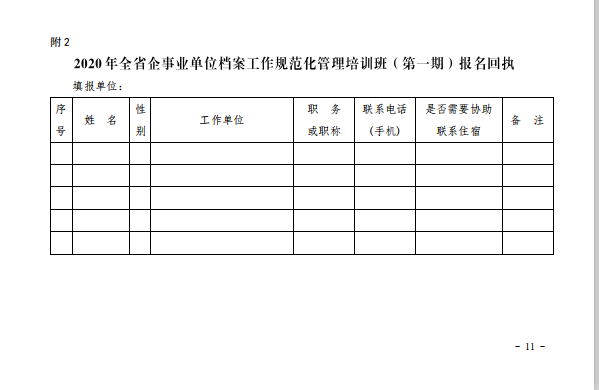 关于举办2020年全省企事业单位档案工作规范化管理培训班(第一期)的通知