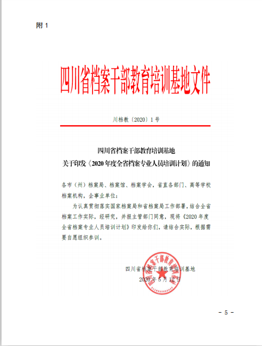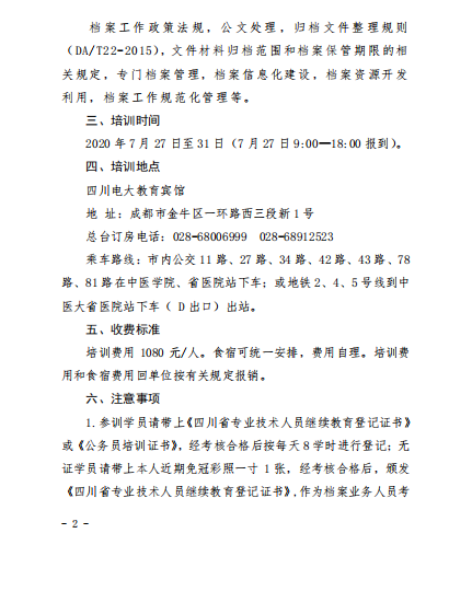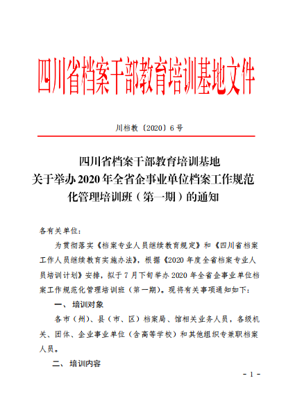 四川省档案干部教育培训基地关于举办2020年全省项目档案业务能力提升班的通知