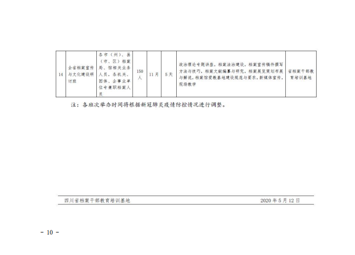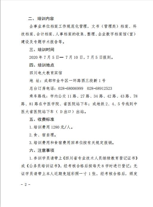 关于举办2020年全省企事业单位档案业务培训班的通知