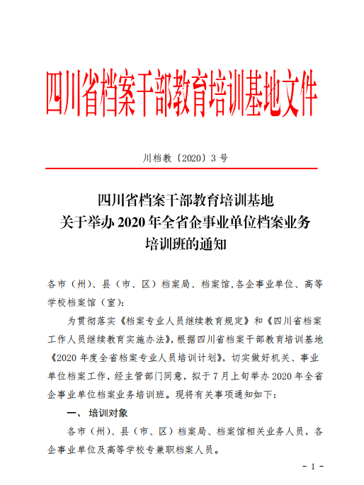 关于举办2020年全省企事业单位档案业务的通知