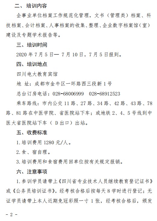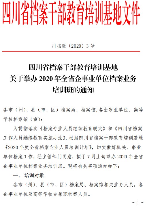 关于举办2020年全省企事业单位档案业务培训班的通知