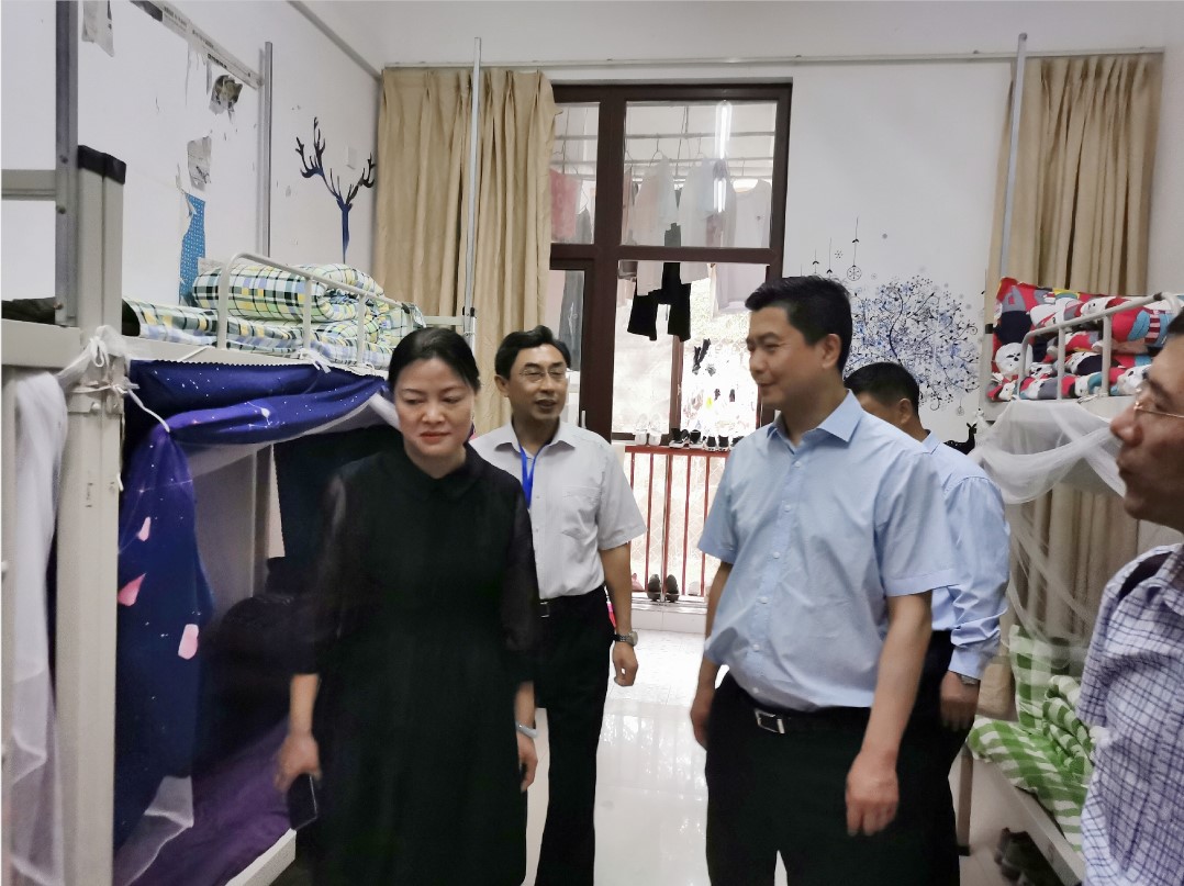 学校副校长童以鸿、伍琼,党委副书记、纪委书记李富民陪同调研,并作了工作汇报。学校各科室负责人参加了会议。