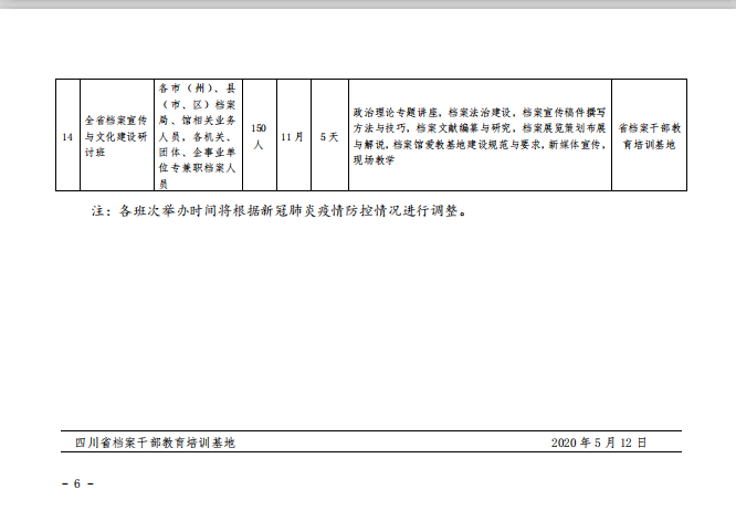 四川省档案干部教育培训基地关于印发《2020年度全省档案专业人员培训计划》的通知