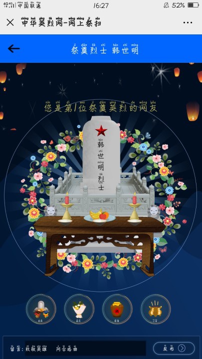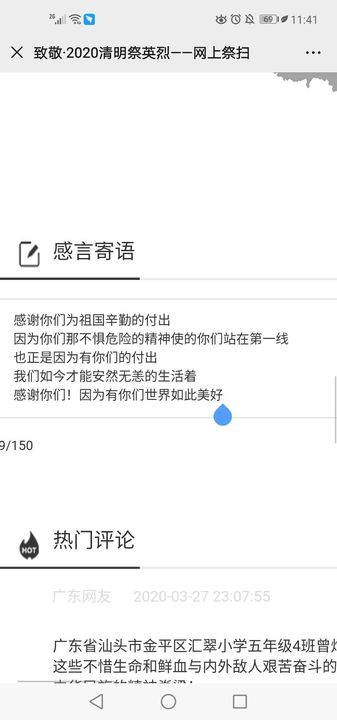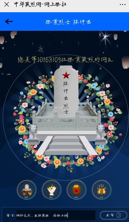 10日前,老师们组织学生登录中华英烈网参加了“网上祭英烈”活动。通过学习英烈事迹、网上献花、寄语留言,表达了学生们对革命先烈的敬仰和追思。