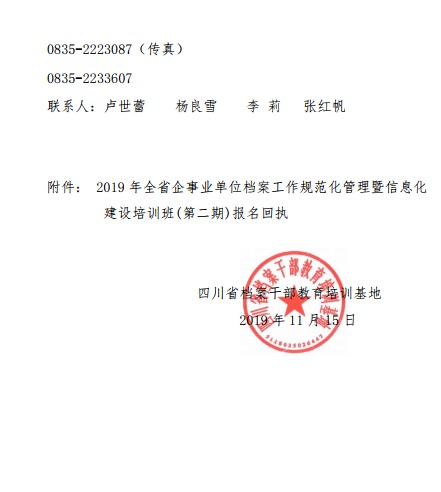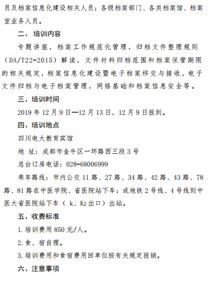 关于举办2019年全省企事业单位档案工作规范化管理暨信息化建设培训班(第二期)的通知