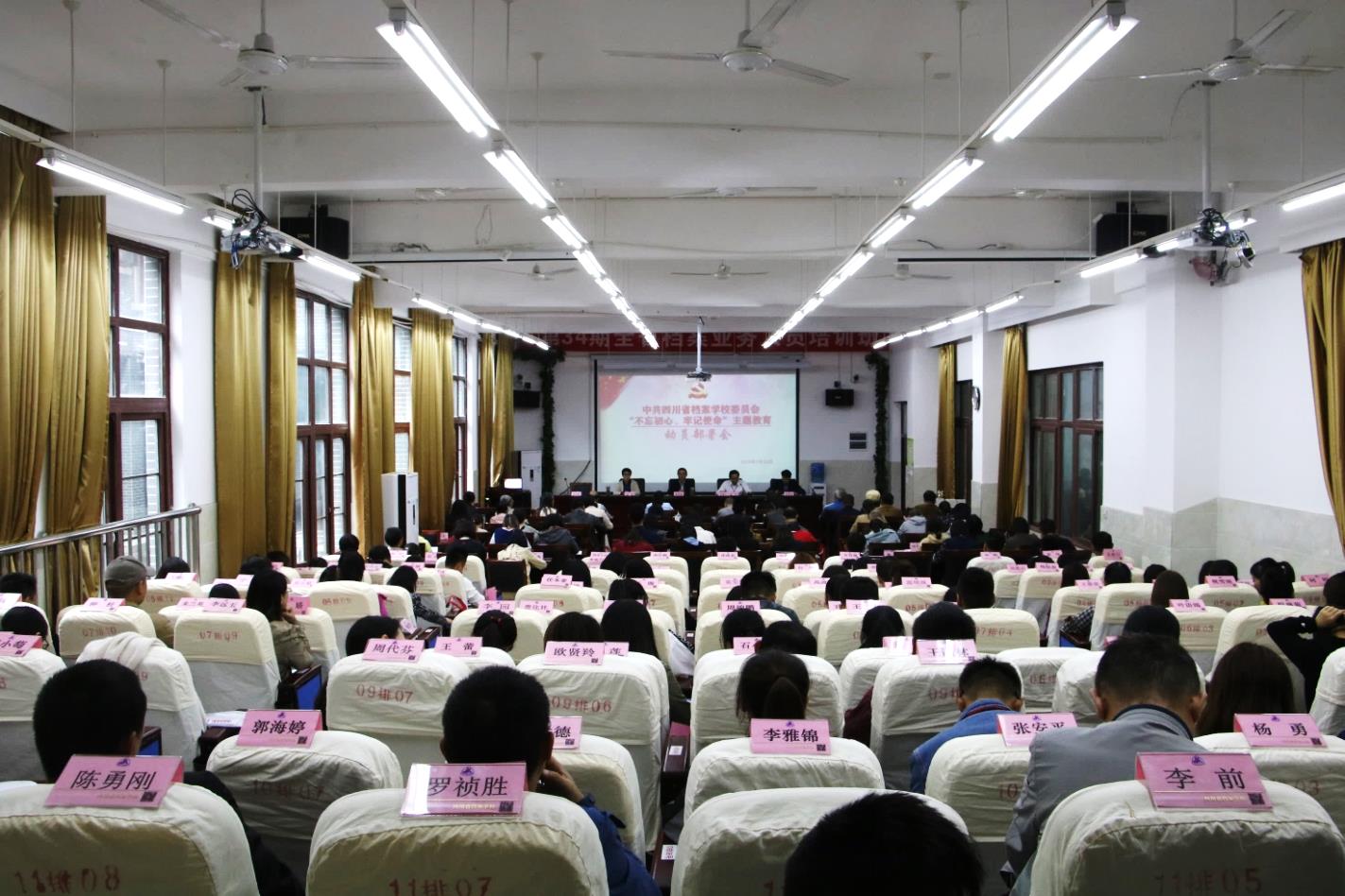 省档案馆机关党办有关人员,学校副校长伍琼,党委副书记、纪委书记李富民,退休教职工党支部党员,资育党支部党员,全校教职工共200余人参加了动员部署会。
