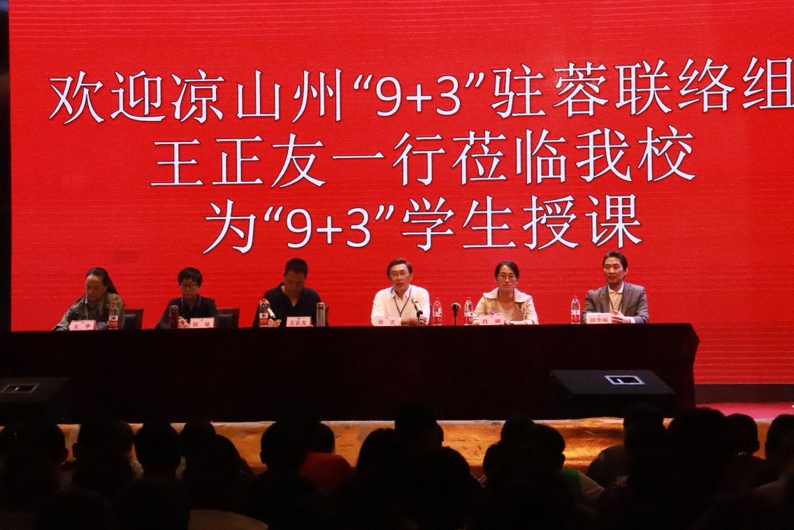 凉山州州教育局“9+3”驻蓉联络组成员王华,肖丽,学校副校长伍琼,“9+3”驻校干部邱华福以及800余名“9+3”学生参加本次授课。