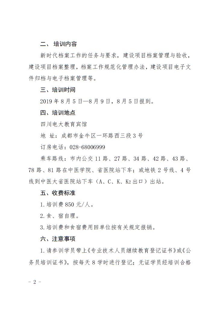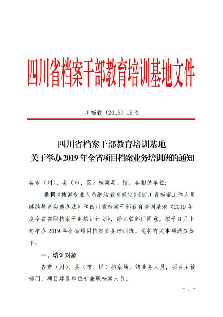 关于举办2019年全省项目档案业务培训班的通知