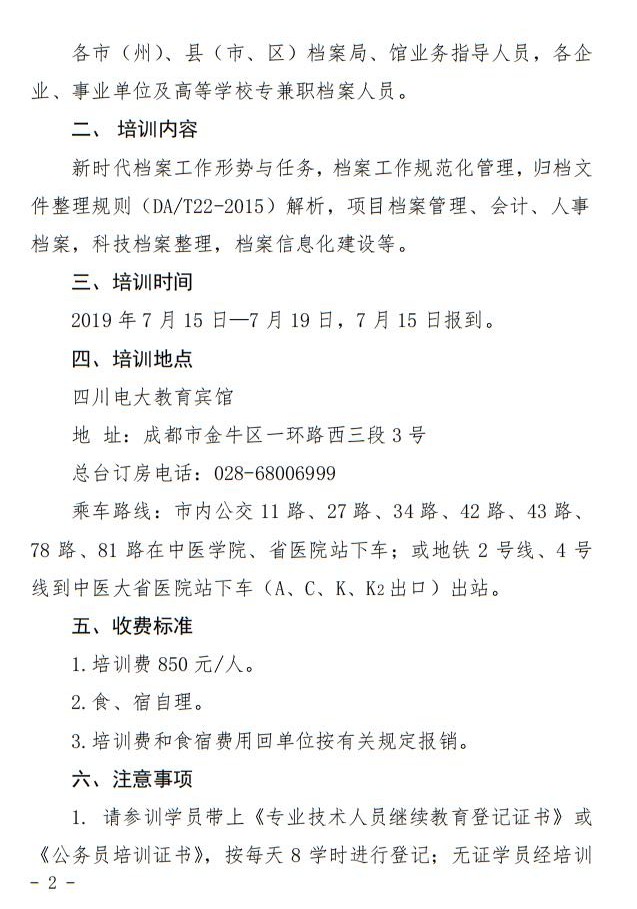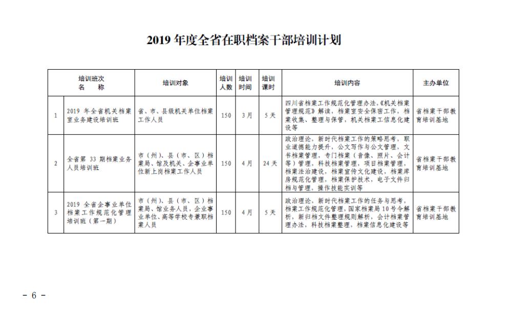 四川省档案干部教育培训基地关于举办2019年全省企事业单位档案工作规范化管理培训班(第二期)的通知
