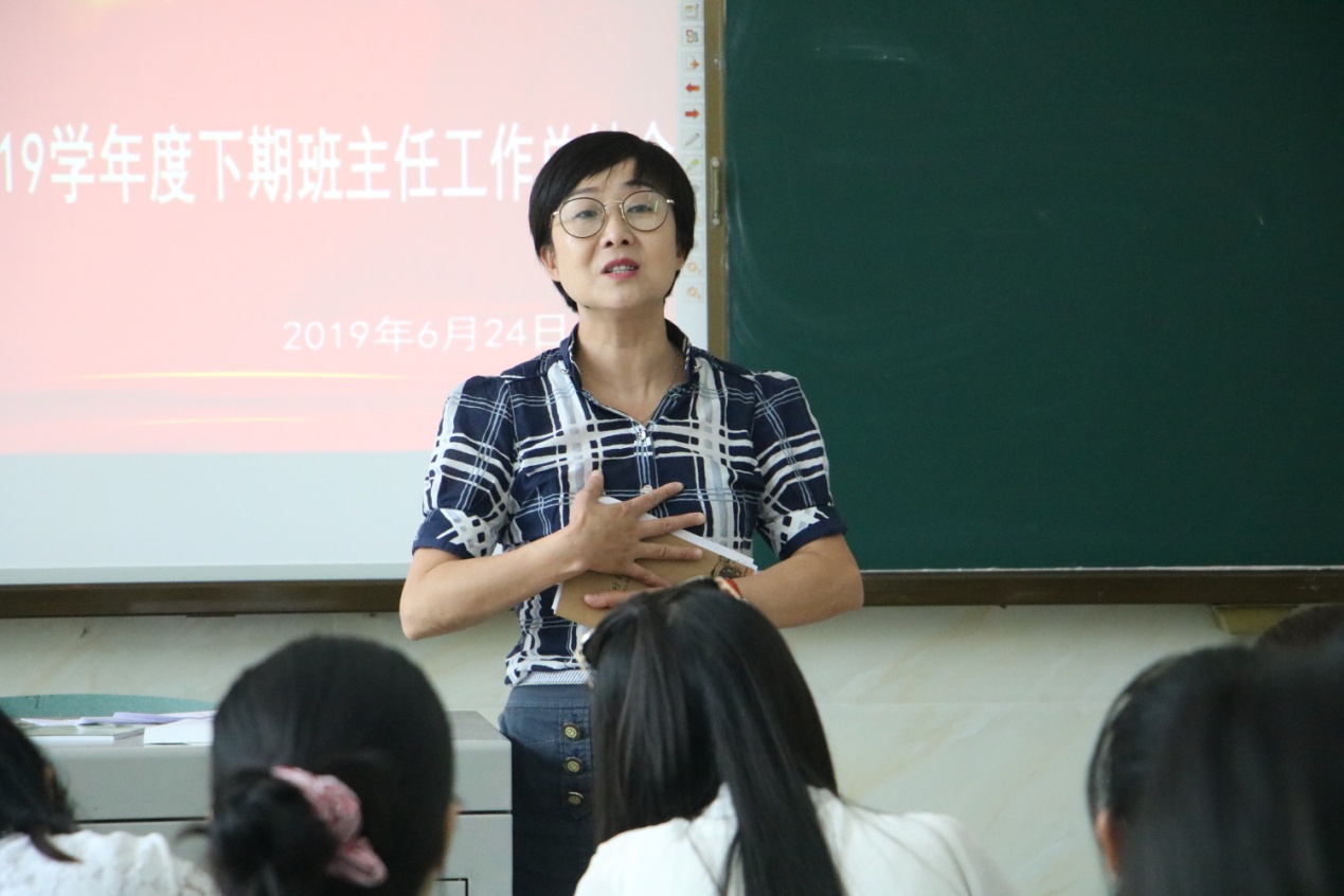 仲夏时分,在学期工作临近尾声之际,为更好地总结本学期班主任工作的得失,更顺利地开展新学期班主任工作, 6 月 24日下午,我校召开了2018-2019学年下期班主任总结会议,参加会议的人员有副校长伍琼、学生科科长郑术兵及2017级、2018级全体班主任。会议以“不忘初心 做有情怀的班主任”为主题,目的是希望班主任们能不忘初心,拥有教育情怀,用春风化雨的言行去滋润每一位学生的心灵,陪伴每一位学生健康成长。会议由学生科科长郑术兵主持。