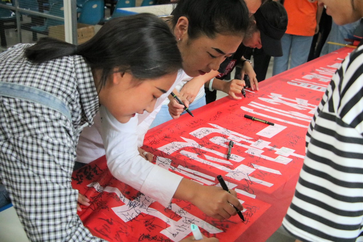 活动包括包粽子、游戏互动和集体就餐三个环节。活动当天上午,学生科通过“班群通知+校园广播”相结合的方式通知留校学生积极前往食堂参与活动。留校学生在进场时开心地在横幅上签名,随后三五成群地围着桌子认真地包起粽子。学生科老师、宿管老师以及食堂工作人员都十分热情地参与进来,亲手示范和教导学生们包粽子,现场气氛十分温馨,其乐融融如同一家人。