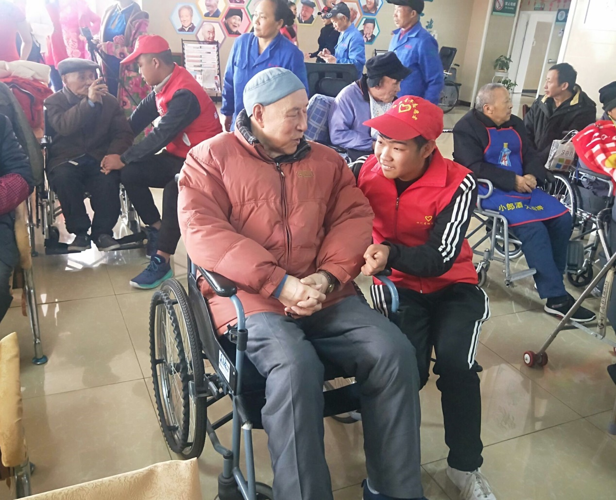 在雅安市第四人民医院主办的“暖冬行•爱传递”学雷锋志愿服务活动中,首先,学校师生志愿者和其他爱心单位以及部分医务人员参加了“关爱精神病人”的爱心捐赠仪式。接着,以“暖冬行・爱传递”主题的文艺汇演在康养中心六楼大厅举行,我校学生表演的民族舞蹈《畲山春》赢得了在场老年人们的阵阵掌声;最后,我校的志愿者加入到了陪护老人的队列中,在得知志愿者们前来看望时,老人们都十分开心。他们有的陪护老人回病房,有的牵着老人的手拉家常,大家在一起亲切的交流,互致祝福。