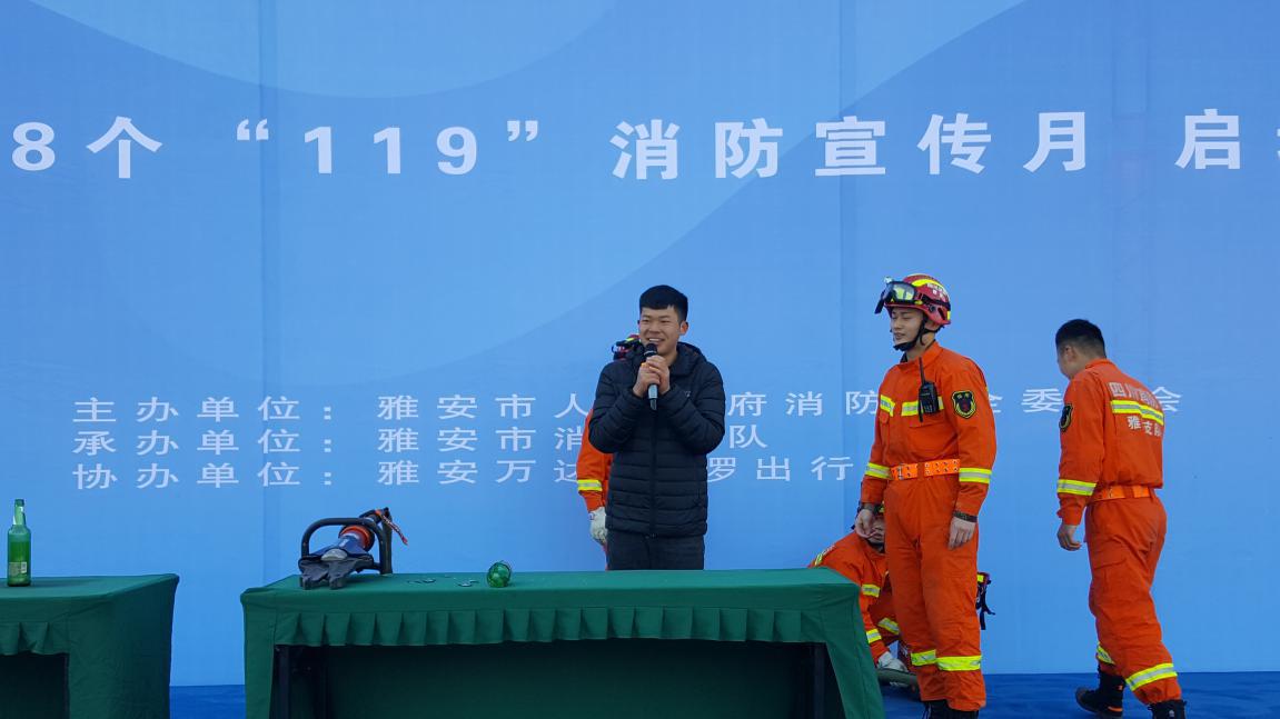 活动中,雅安市副市长、公安局局长马宏发表讲话,他号召各级各部门、各消防重点单位要从思想上、行动上关注消防工作,以昂扬的姿态、扎实的作风、良好的形象做好消防工作;社会各界和广大人民群众要积极投身到消防宣传活动中,以自己的模范作用带动和影响周边的人,形成消防工作“人人受到宣传教育,人人增强防范意识,人人掌握基本常识”的良好局面,为建设幸福美好新雅安营造良好的消防安全环境。同时指出,“火善用之则福,不善用之则为祸”,火是一把双刃剑,如果疏忽大意就会给人们带来灾祸。