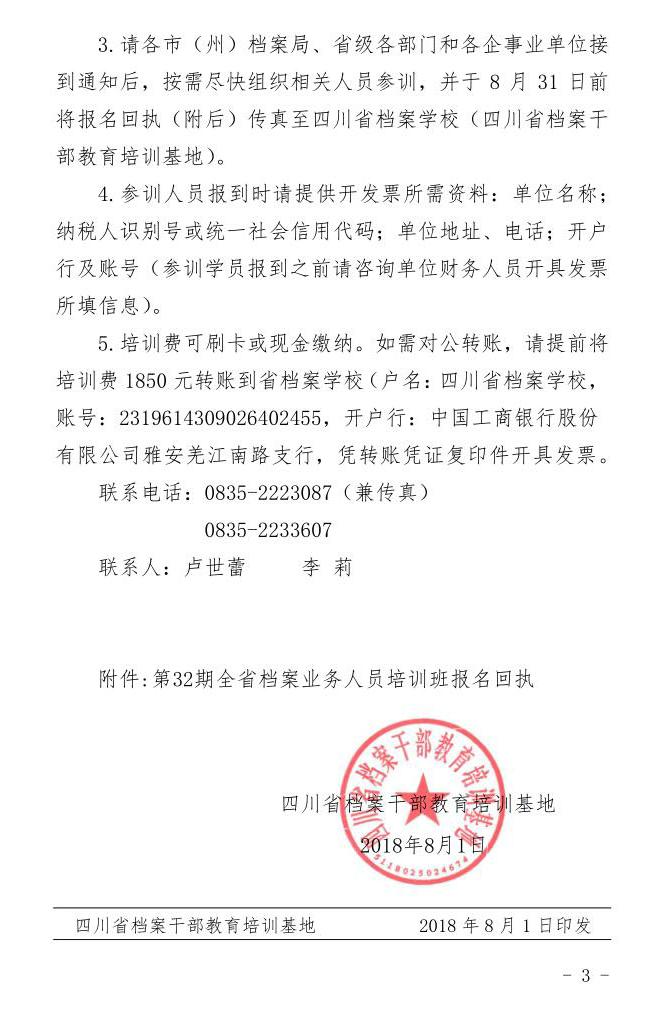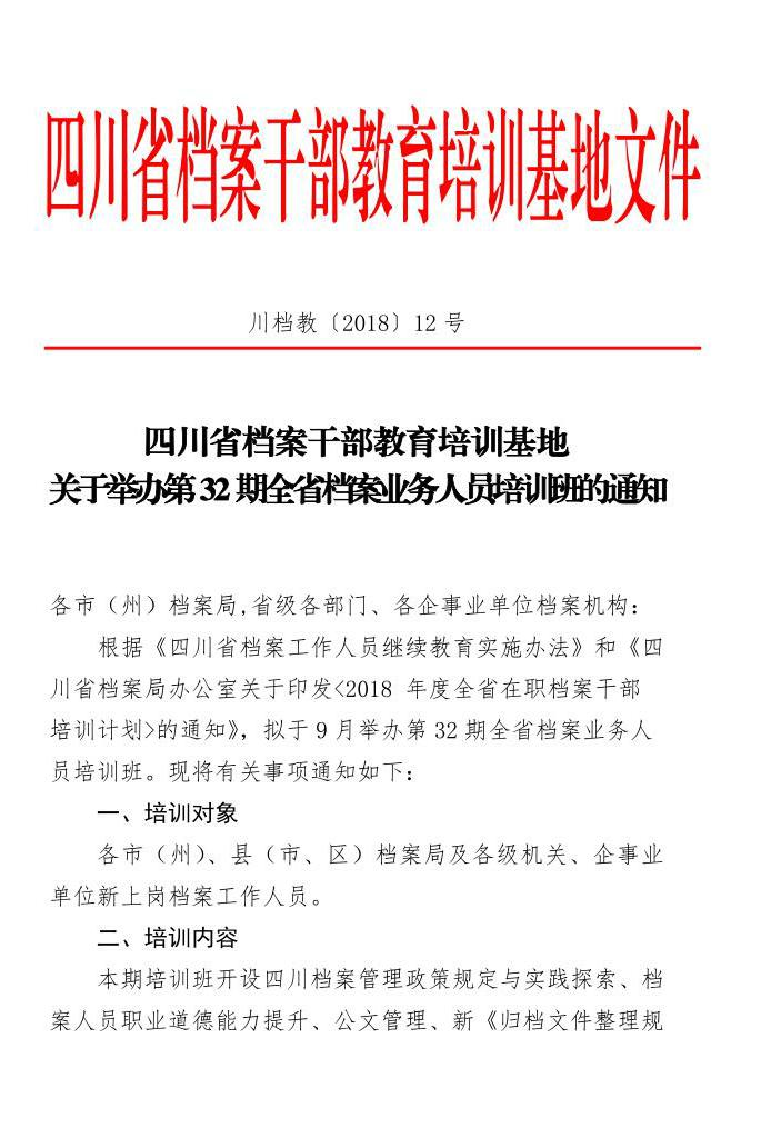 四川省档案干部教育培训基地关于举办第32期全省档案业务人员培训班的通知