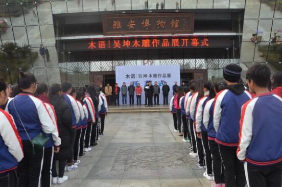 12月28日上午,四川省档案学校客座教授吴坤大师的“木语--吴坤木雕作品展”在雅安市博物馆隆重举办,本次作品展由雅安市文联、雅安市文体广新局和芦山县委宣传部共同主办,雅安市博物馆馆长李炳中,雅安市博物馆副馆长郭凤武,雅安市文体广新局副局长王佳勇,芦山县县委常委、宣传部长袁嘉伟,雅安市文联常务副主席陈果,四川省档案学校党委副书记、纪委书记李富民,四川省档案学校党委委员、教务科科长徐慧珍出席了开幕式。