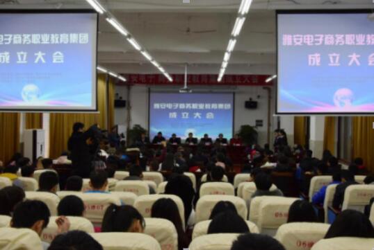 成立大会上,雅安市教育局职成科科长杨德福同志宣读了《关于成立雅安电子商务职业教育集团的批复》;雅安市商务和粮食局长罗国强、教育局副局长王瑞华和新任理事长徐宏为雅安电子商务职业教育集团揭牌;职教集团新任秘书长卢峰同志宣读了《雅安电子商务职业教育集团机构组成人员名单》、《雅安电子商务职业教育集团第一届理事会理事单位名单》;集团新任常务副理事长、雅安市电子商务协会会长、四川蒙顶山味独珍茶叶集团有限公司董事长张强在会上发言。
