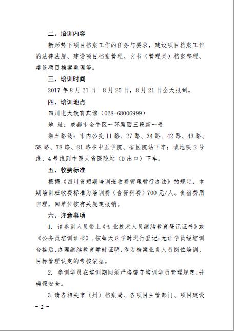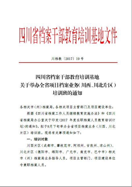 关于举办全省项目档案业务(川西、 川北片区)培训班的通知